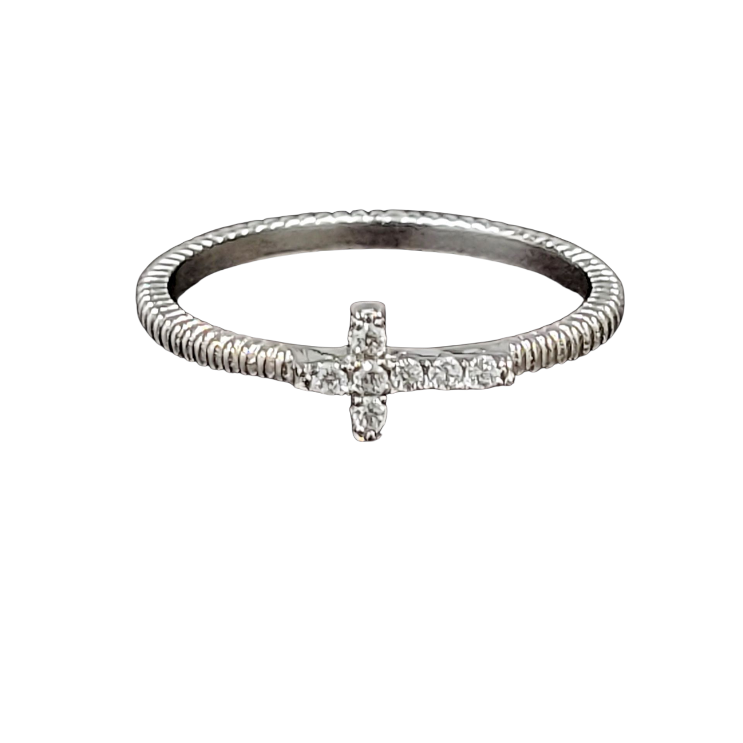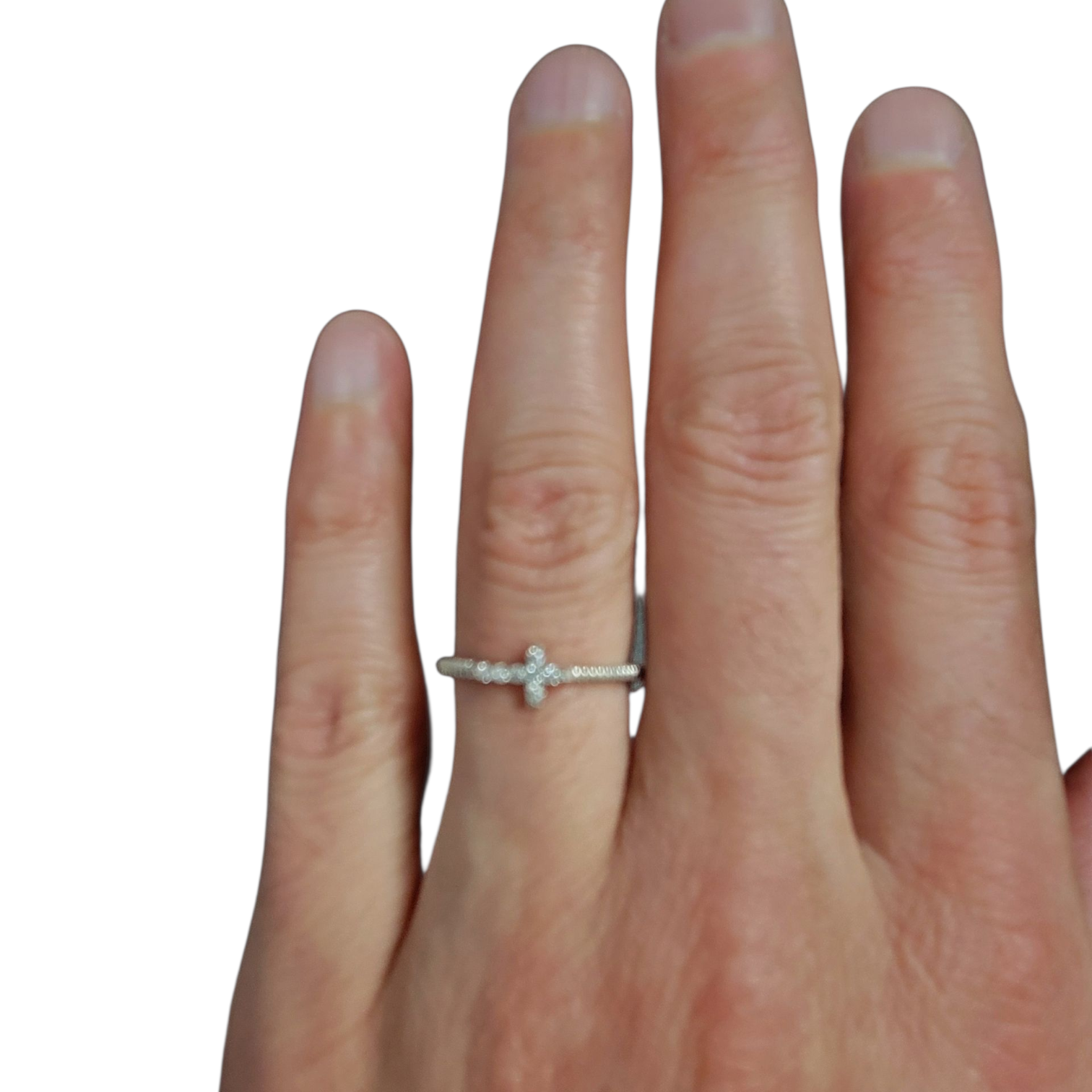 Silver Mini CZ Side Cross Ring - 3 is backordered and will ship as soon as it is back in stock.