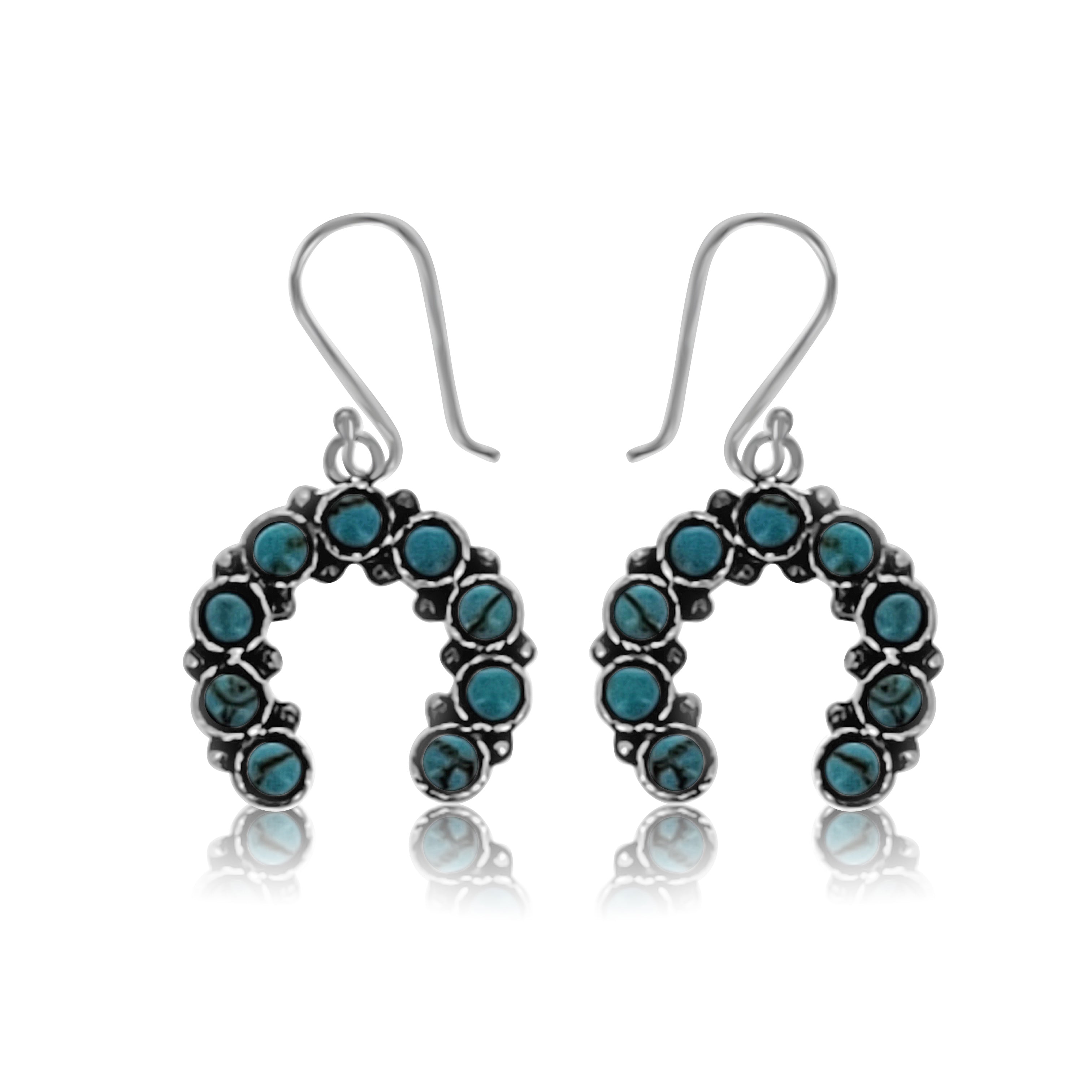 Genuine Turquoise Cluster Naja Design Dangle Earrings.