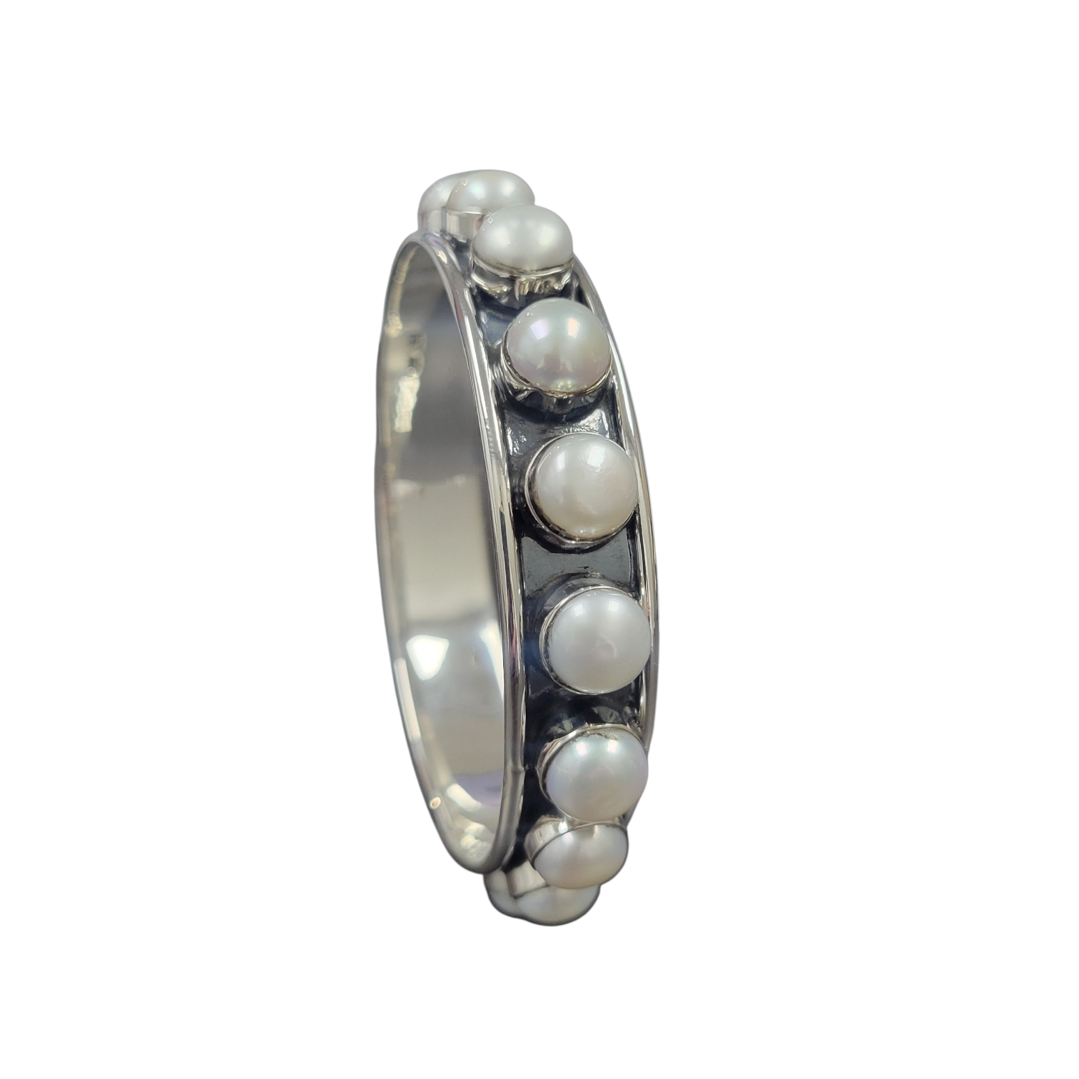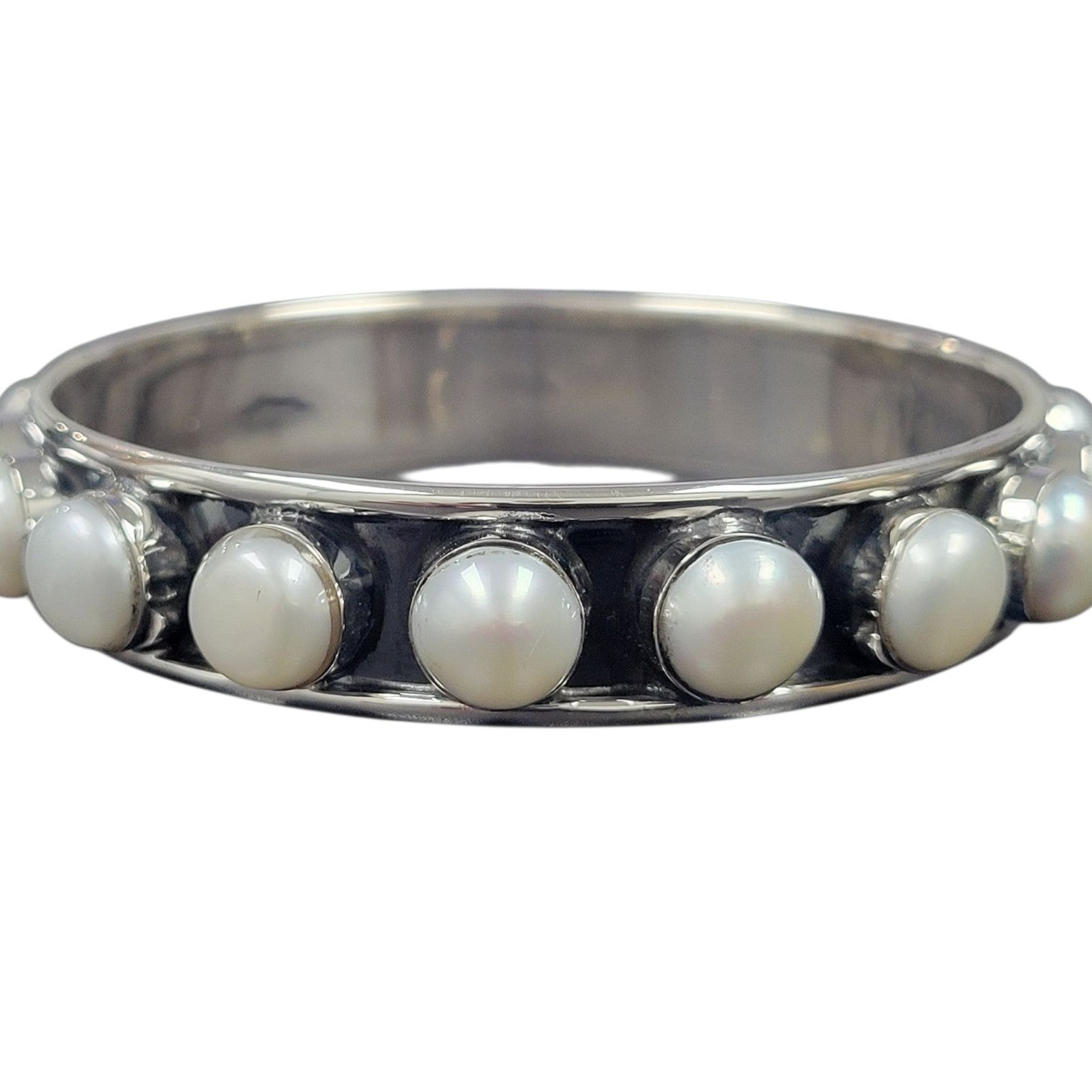 .925 Sterling Silver14mm Wide Bangle with 9mm Genuine Freshwater Pearls