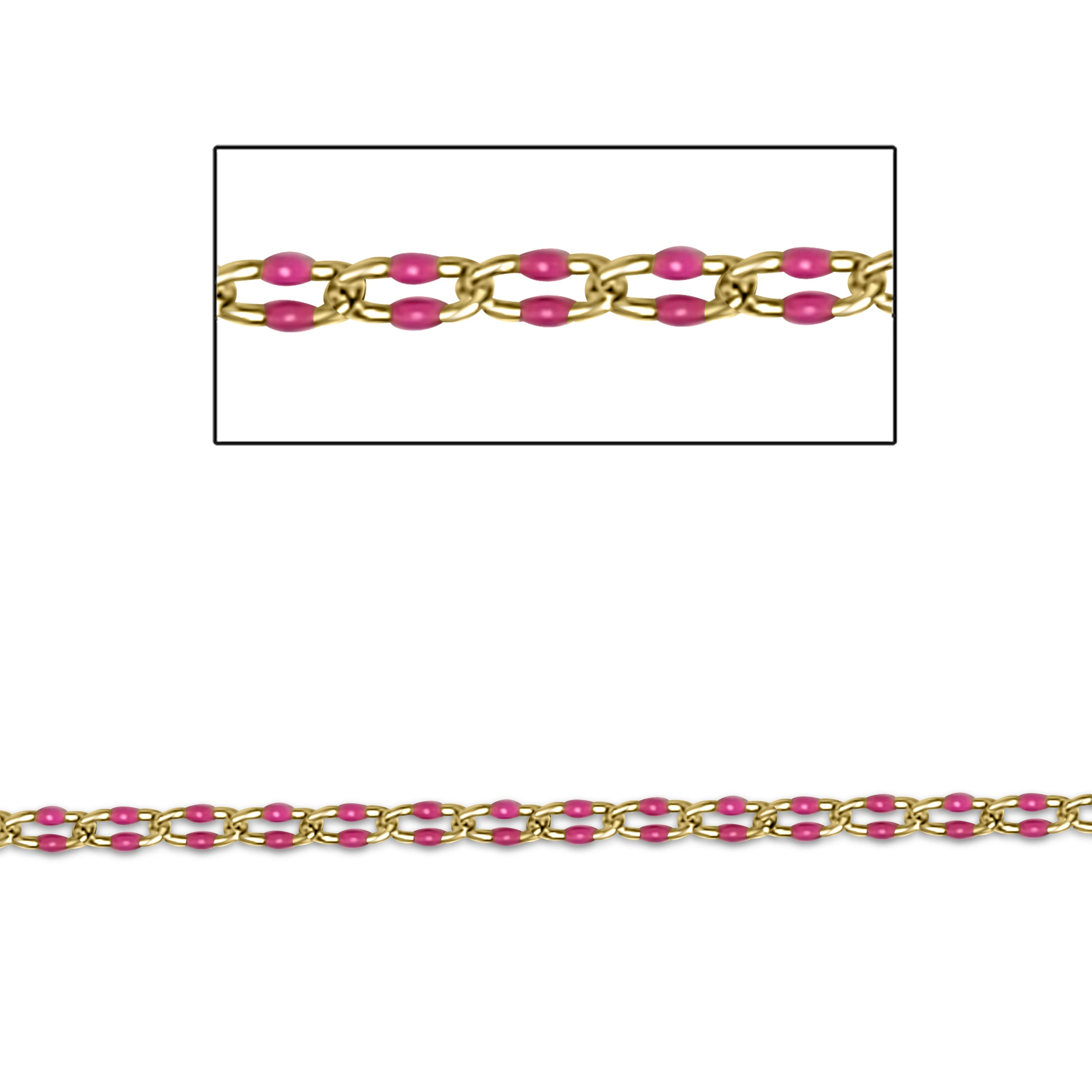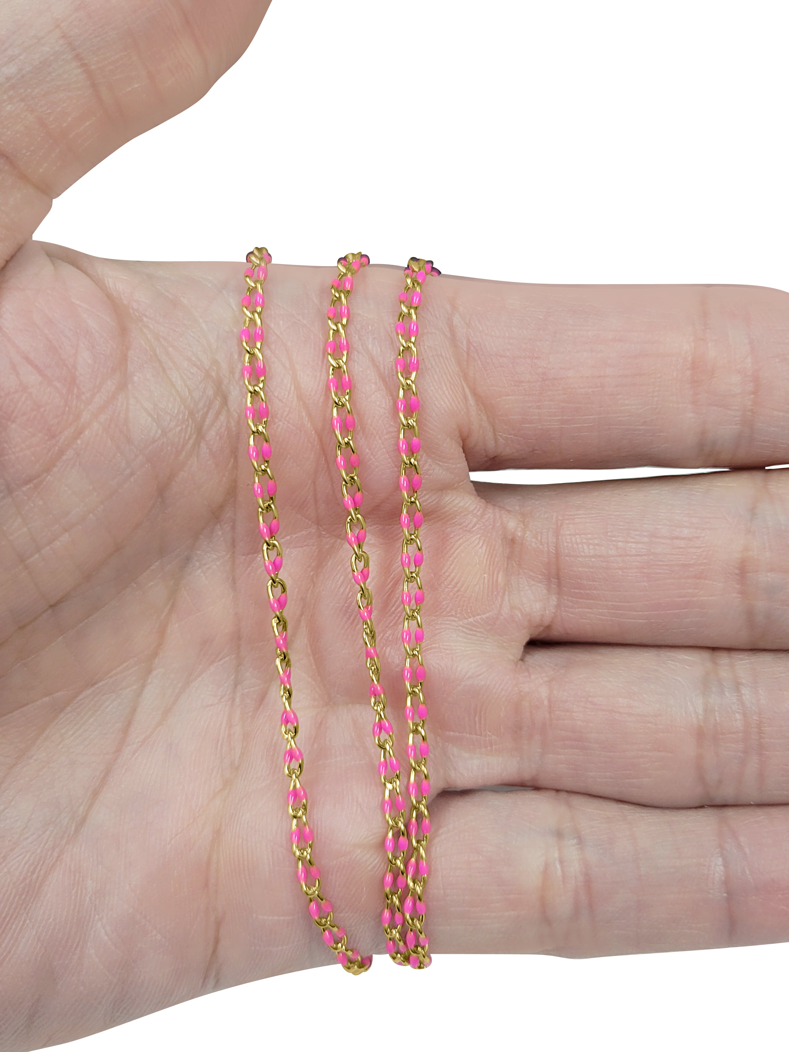 Permanently Enameled Cable Chain. Machine run and Soldered Links. Made from 22 gauge wire. Unique chain that can be manipulated into a variety of jewelry designs.