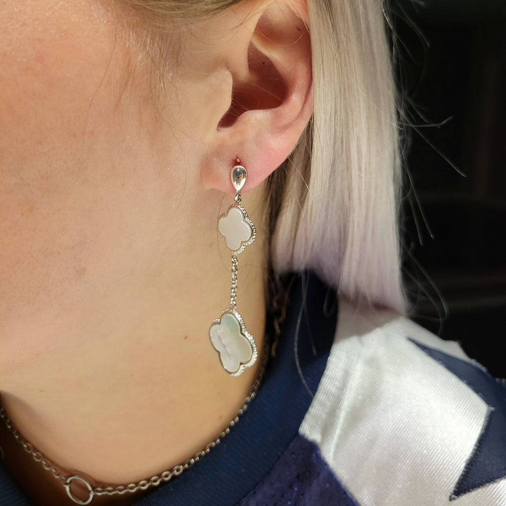 Inlaid Mother of Pearl Charms.  2.25 inches long when worn.